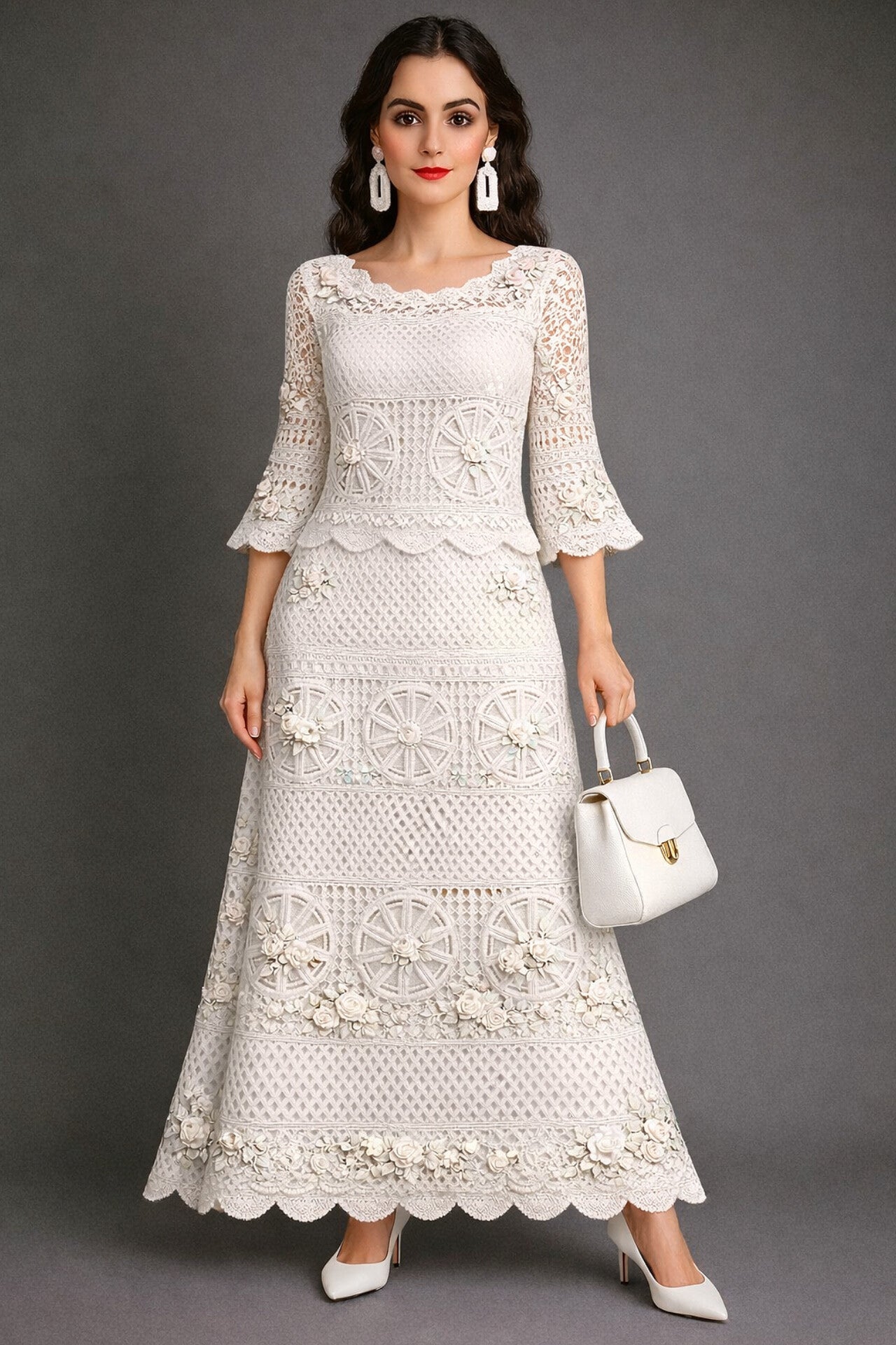 Forma del producto Vestido Largo 514 EXTERIOR ✅TEJIDO PRINCIPAL 92% Encaje de Algodón Fino, ✅TEJIDO Secundario 8% Fibra Metálica. $ 1,200.00 Talla XS S M L XL 2XL 3XL 4XL Quantity Añadir a la cesta Pairs well with